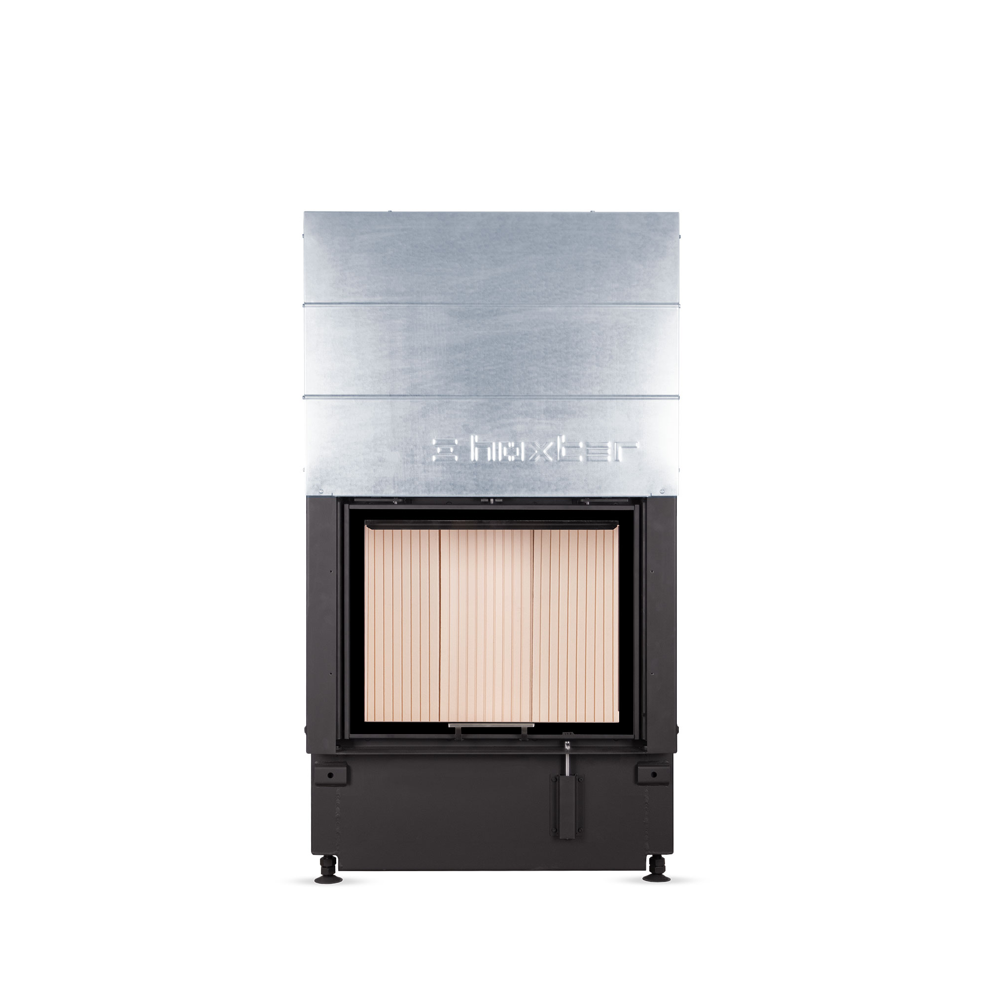 Väikese paigaldussügavusega kaminasüdamik. Tõstetava uksega. Kaminasüdamikku on võimalik tellida ka tumeda šamottvoodriga.