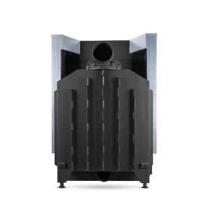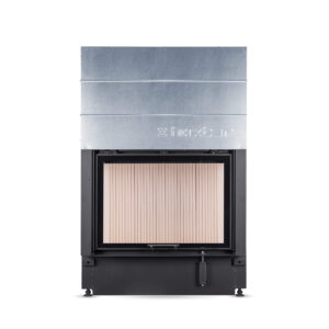 Suure klaasuksega kaminasüdamik. Tõstetava uksega.