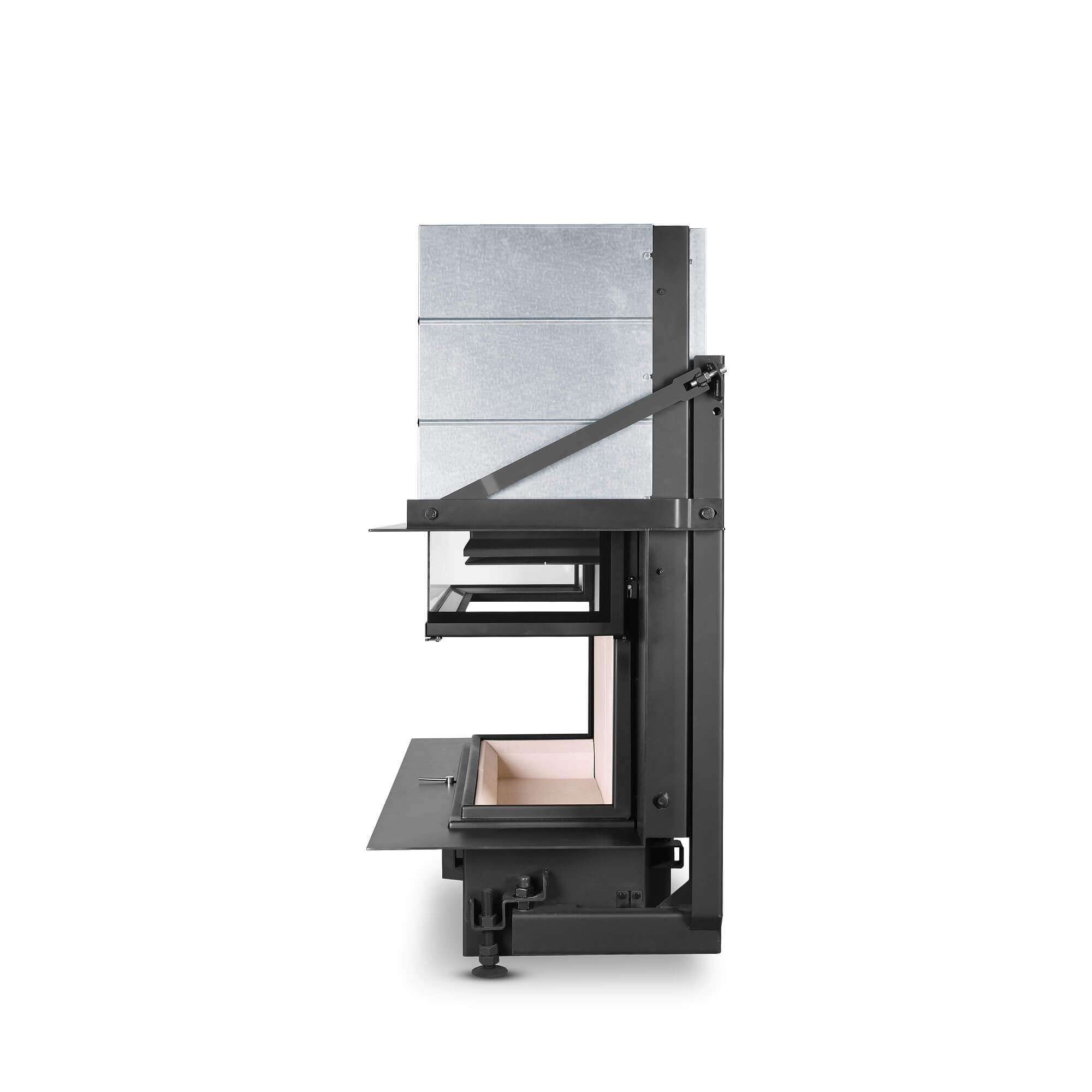 Väikse paigaldussügavusega kolmest küljest vaadeldav kaminasüdamik Hoxter UKA 35/80/35/50Sh. Tõstetava uksega. Kõik tõstetavad uksed on tellitavad ka eemaldatava käepidemega, et miski ei segaks vaadet tulele.