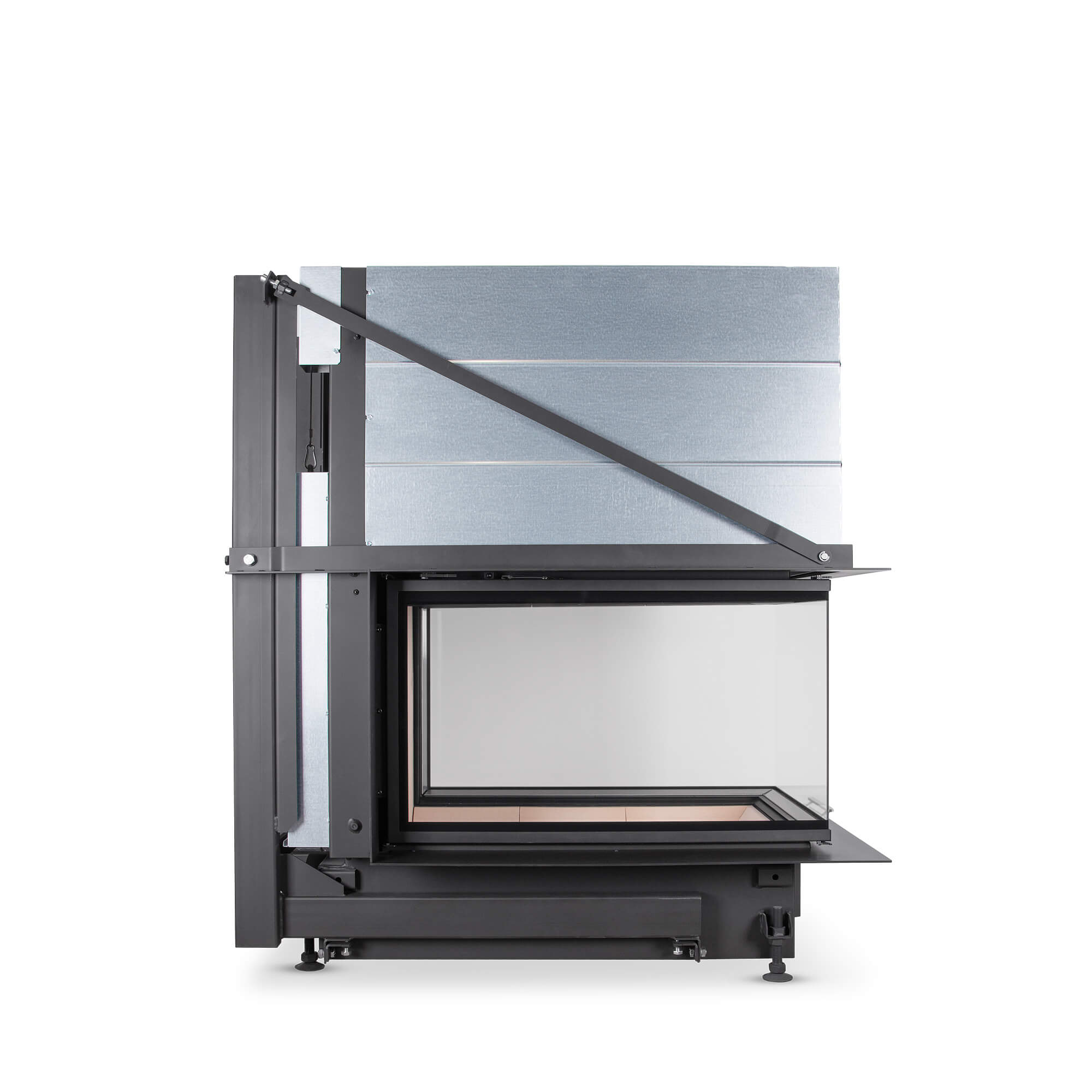 Kõige sügavam kolmest küljest vaadeldava koldega kaminasüdamik Hoxter UKA 86/50/86/52h. Tõstetava uksega. Kõik tõstetavad uksed on tellitavad ka eemaldatava käepidemega, et miski ei segaks vaadet tulele.