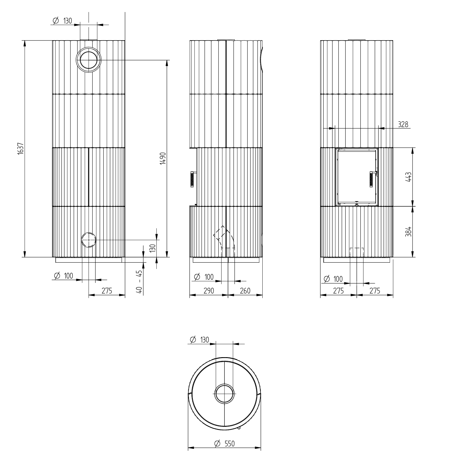 - terasest suitsutoru Ø130 mm (Ø150 mm) (vertikaalne/horisontaalne),